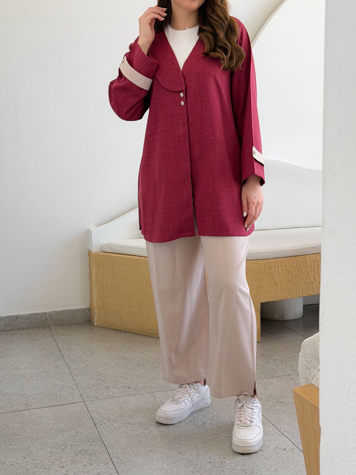 الطقم المريح الساترمن خمايل يناسب اجواء الصيف زهري غامق